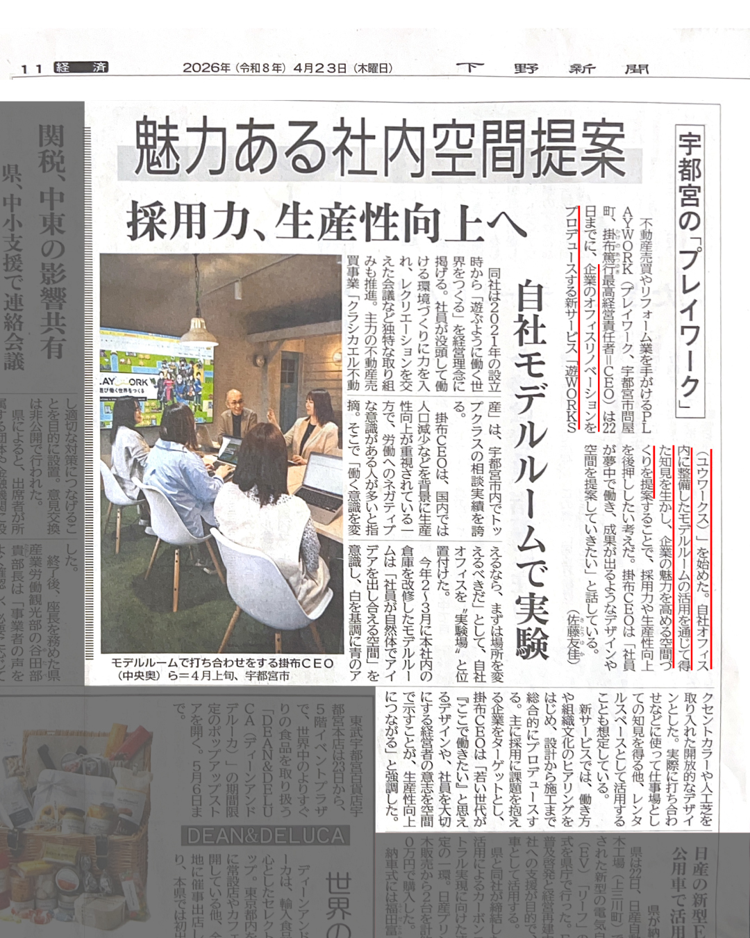 遊WORKSについて2026年4月23日付【下野新聞】に掲載されました。