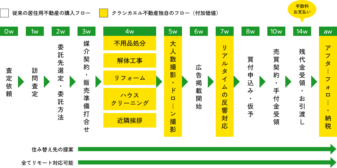 また、売却に必要な不用品処分やハウスクリーニング、リペア工事などの費用は、クラシカエル不動産が立て替えることで、売主様の負担を軽減し、スムーズに売却活動を進めていただけます。